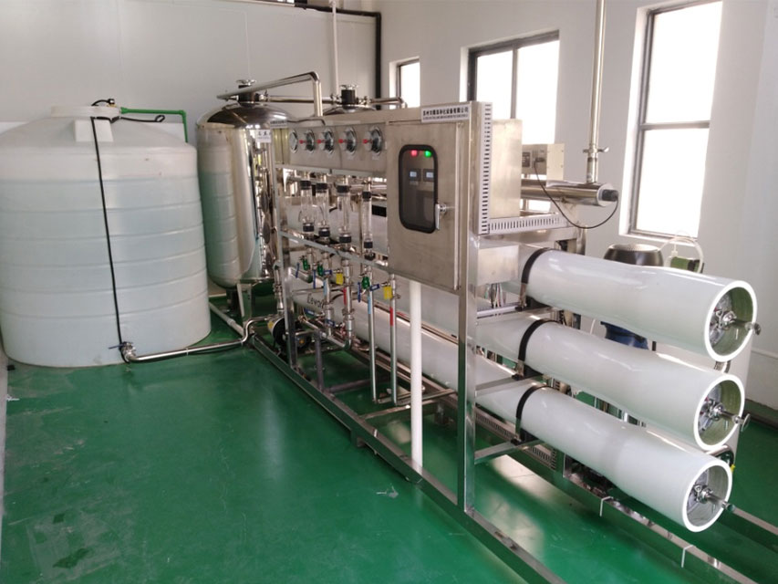 消毒劑用水的主要指標(biāo)是純水電導(dǎo)率與細(xì)菌總數(shù),產(chǎn)水符合《2020版國內(nèi)藥典》純化水標(biāo)準(zhǔn)。所有材質(zhì)及產(chǎn)水標(biāo)準(zhǔn)需要符合食品GMP認(rèn)證要求。 因此,我們采用二級(jí)RO+紫外線殺菌工藝,主要指標(biāo):純水電導(dǎo)率:≤4.3μs/cm(20℃),PH:5-7,細(xì)菌總數(shù):≤100cfu/mL